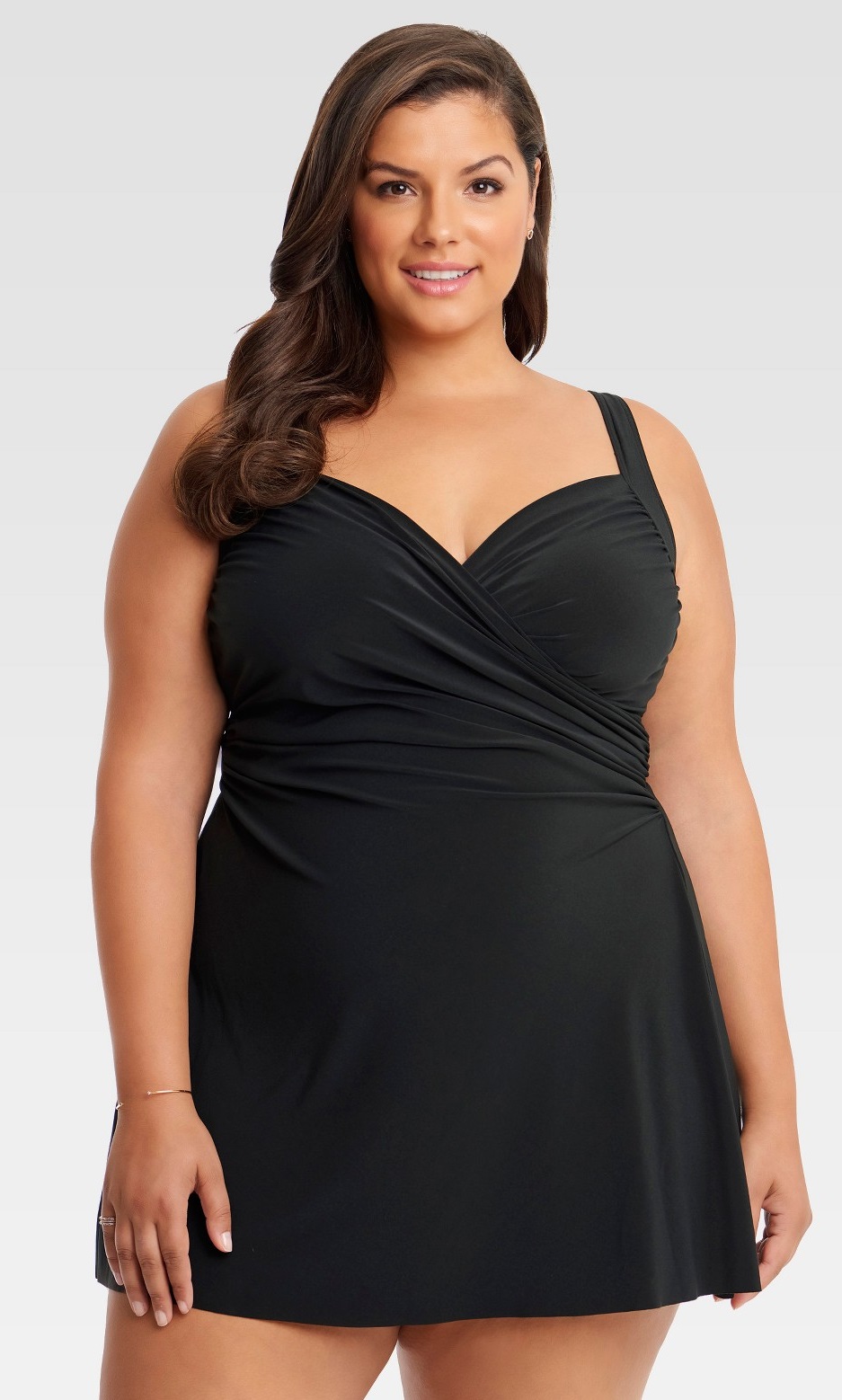 I say, ain’t no shame in that swimdress game! I chose to focus on plus size swimdresses in black first for a few reasons. For one, sadly, black was the most prevalent color available. Two, I love black and find it easiest to style. And three, black truly is the most universally flattering color. However, no one, no matter their size, shape, weight or any physical feature, should have to wear black or a higher-coverage swimsuit.