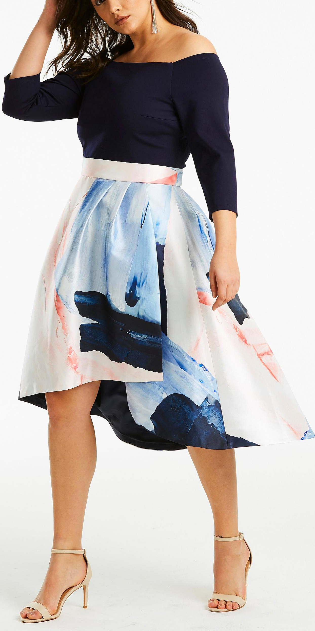 Where can I get dress #29, the off the shoulder dress with the printed high-low skirt?
